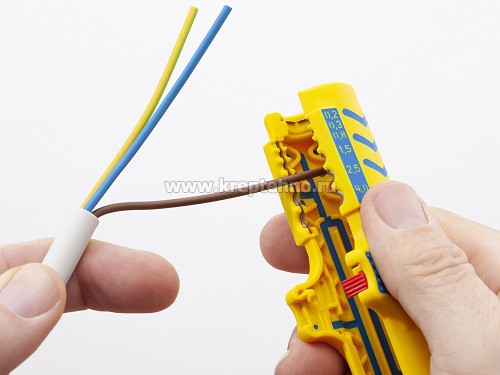 Откройте инструмент и вставьте кабель. Для снятия изоляции необходимо закрыть инструмент, повернуть вправо и влево на 1/4 оборота. Снимите оболочку после легкого сгибания кабеля. Для снятия изоляции с проводника вставьте проводник в подходящие по сечению гнездо и снимите изоляцию. Для продольного реза кабеля, вставьте кабель в специальное окно и протяните инструмент. ВНИМАНИЕ! Не предназначен для работ под напряжением!