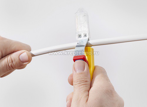 - С помощью регулировочного винта установить вылет ножа по самой тонкой части изоляции.
