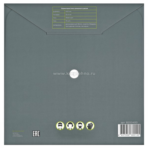 • Диаметр диска 400 мм с посадкой 25,4 мм подходит для большинства бензорезов и швонарезчиков.