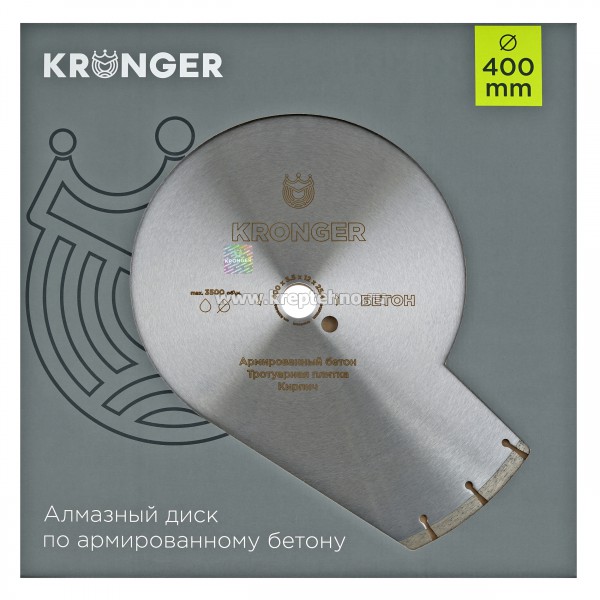• Алмазный диск Kronger - сегментный, имеет толщину алмазного слоя 3,5 мм, высоту 12 мм.