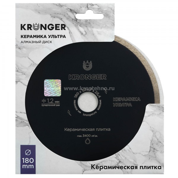 Äèñê àëìàçíûé 180x1,2õ7õ25,4 Ñeramics Ultra (êåðàìè÷åñêàÿ ïëèòêà, êåðàìîãðàíèò, ìðàìîð), Kronger