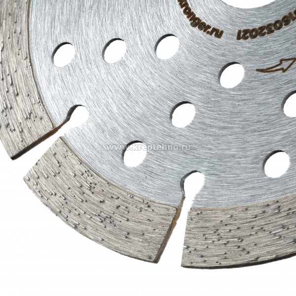 • Алмазный диск Kronger - сегментный, имеет толщину алмазного слоя 1,8 мм, высоту 11 мм.