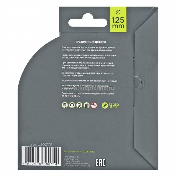 • Диаметр диска 125 мм с посадкой 22,23 мм для болгарки.