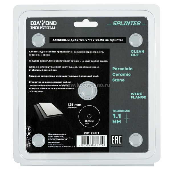 Купить Диск алмазный SPLINTER Diamond Industrial в Екатеринбурге и Свердловской области можно в сети магазинов КРЕПЕЖ-СИТИ.