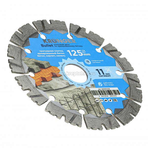 Диск алмазный 125x2.3х11х22,23 Bullet (арм.бетон, бетон, кирпич, трот. плитка, гранит), Kronger