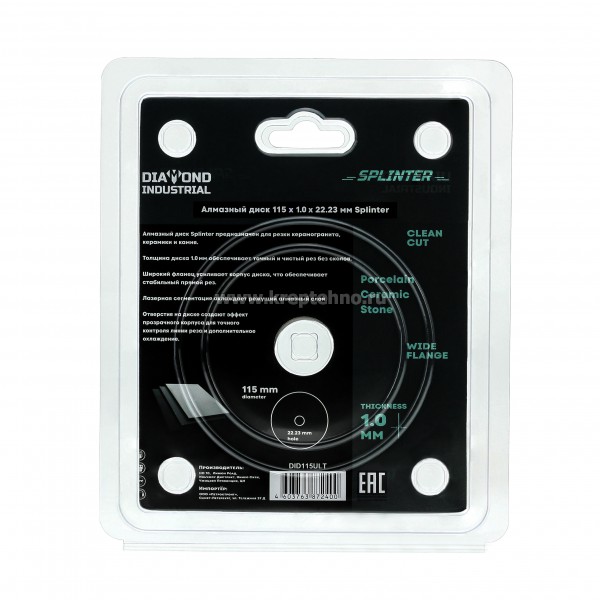 Диск алмазный 115x1,0x8x22,23 SPLINTER (камень, керамогранит, керамика, мрамор), Diamond Industrial