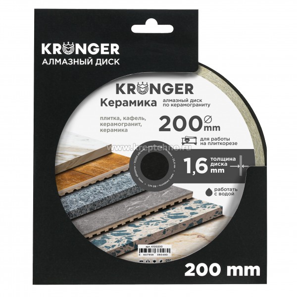 Алмазный диск Kronger предназначен для работы по керамограниту.