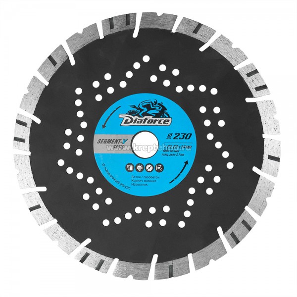Купить Диск алмазный по армированному бетону, мрамору DIAFORCE Segment-V Basic сухой рез в Екатеринбурге и Свердловской области можно в сети магазинов КРЕПЕЖ-СИТИ.