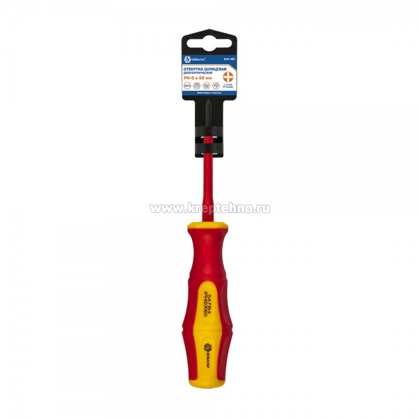 Отвертка диэлектрическая крестообразная PH-0 х 60мм КОБАЛЬТ 646-485 предназначена для завинчивания/отвинчивания винтов, шурупов и саморезов находящимися под напряжением до 1000 Вольт.при проведении строительно-монтажных работ, сборки/разборки, ремонта различных механизмов, узлов и агрегатов.