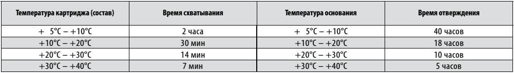 Вышеуказанное время отсчитывается с момента контакта между смолой и отвердителем в статическом миксере.