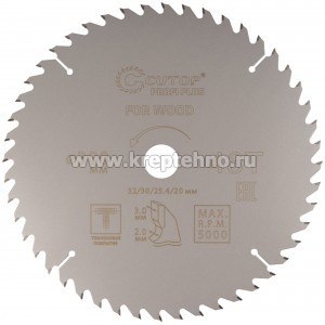 Диск пильный 300х2.0/3.0х32/30/25,4/20 мм 48Т по дереву, с тефлоновым покрытием, CUTOP Profi