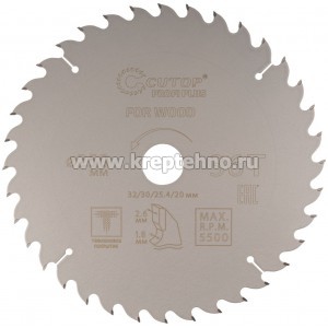 Диск пильный 250х1,8/2,6х32/30/25,4/20 мм 36Т по дереву, с тефлоновым покрытием, CUTOP Profi