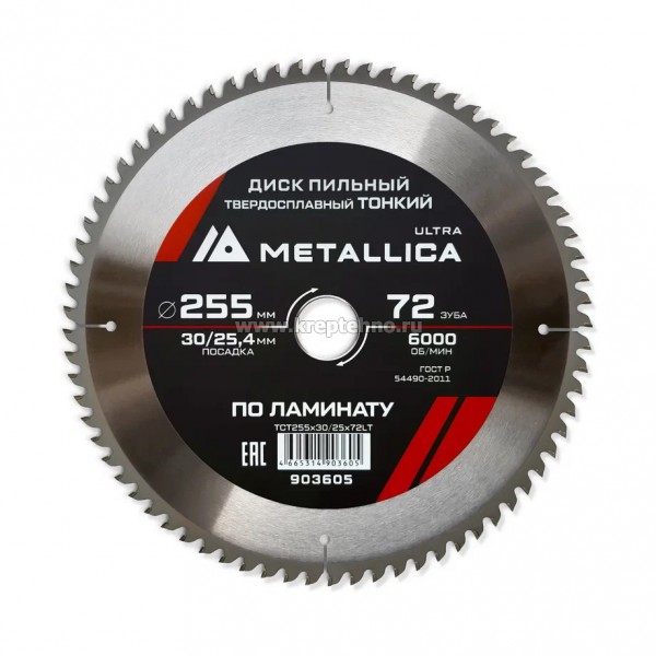 Купить Диск пильный тонкий по ламинату METALLICA Ultra в Екатеринбурге и Свердловской области можно в сети магазинов КРЕПЕЖ-СИТИ.
