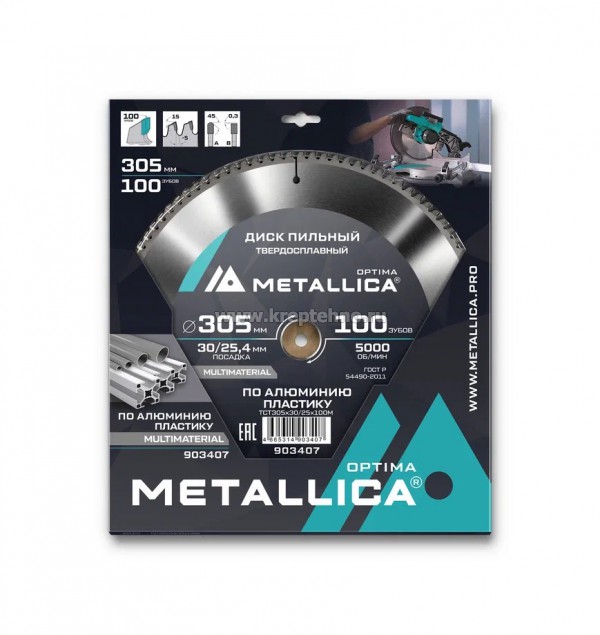 Купить Диск пильный по алюминию, пластику METALLICA Optima в Екатеринбурге и Свердловской области можно в сети магазинов КРЕПЕЖ-СИТИ.