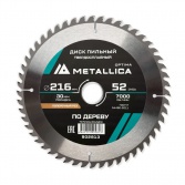 Диск пильный 216х2,6х30мм 52Z по дереву, для чистого поперечного пиления, METALLICA Optima