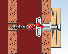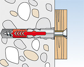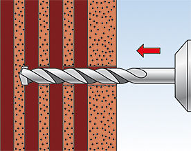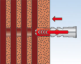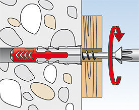 • Вворачивание шурупа обеспечивает распор дюбеля DUOPOWER в полнотелом строительном материале, связывание в полостях пустотелых материалов и распор лопастей дюбеля в листовых материалах.