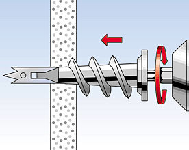 Устанавливается заподлицо с поверхностью панельного строительного материала. Следует избегать чрезмерной затяжки дюбеля, по этому при использовании шуруповерта необходимо ограничивать момент затяжки.