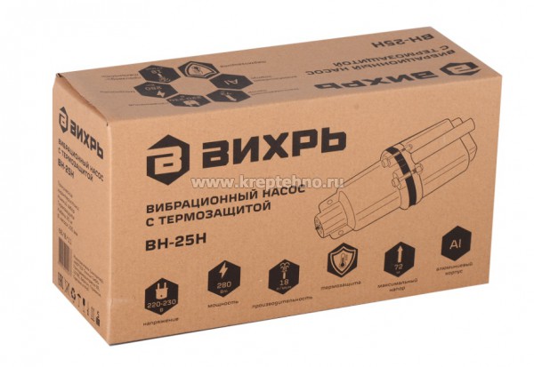 Вибрационный насос Вихрь ВН-25Н отлично подходит для подачи воды из скважин и колодцев, но также может применяться для различных емкостей и природных источников. Благодаря мощности в 280 Вт, может подавать воду на высоту до 72 м. По этой причине подходит не только для дач и частных домов, но и небольших ферм, хозяйств. Хорошо справляется с поливом или орошением, так как имеет производительность 18 л/мин. Насос Вихрь ВН-25Н подходит для перекачивания воды на большие расстояния по горизонтальной магистрали.