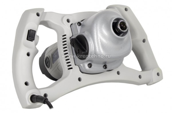 • В основе конструкции миксера лежит мощный электромотор с энергопотреблением 1600 Вт, благодаря чему устройство легко справляется с обработкой тяжелых строительных смесей.