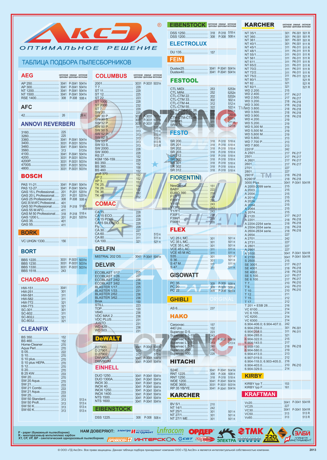 Таблица подбора пылесборниковЭта таблица поможет вам в выборе необходимой модели мешков для сбора пыли, а приобрести пылесборники вы можете в наших магазинах!