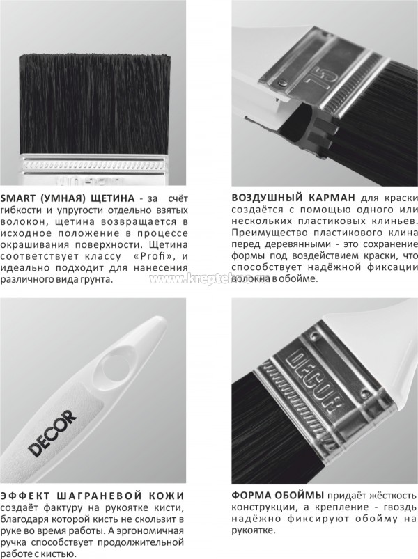 Чёрная синтетическая щетина, пластиковая ручка.