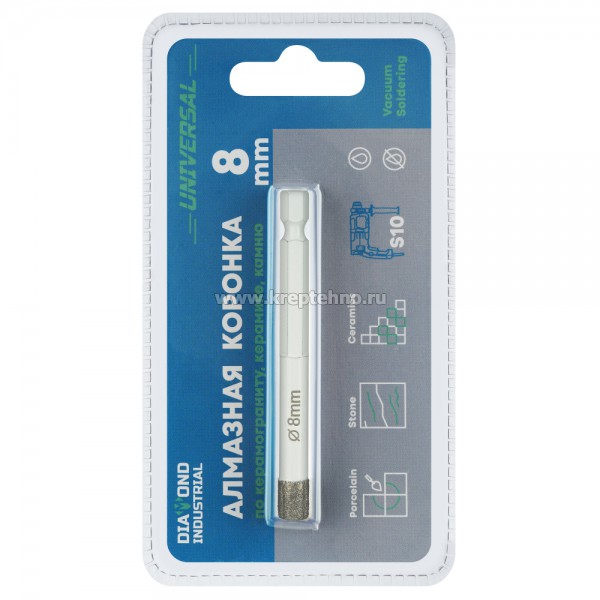 Коронка алмазная по керамике и керамограниту 8 мм, хвостовик HEX 1/4, Diamond Industrial