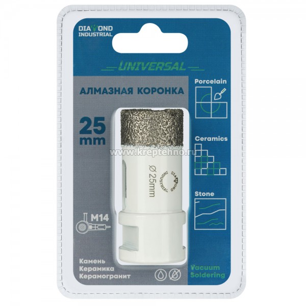 Коронка алмазная по керамике и керамограниту 25 мм/M14 для УШМ, Diamond Industrial