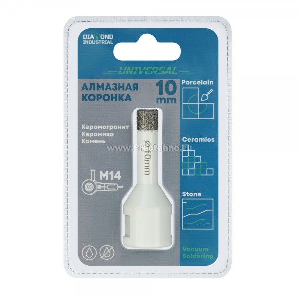 Коронка алмазная по керамике и керамограниту 10 мм/M14 для УШМ, Diamond Industrial