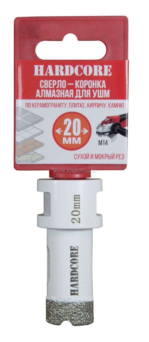 Коронка алмазная по керамике и керамограниту 20 мм/M14 для УШМ, Hardcore