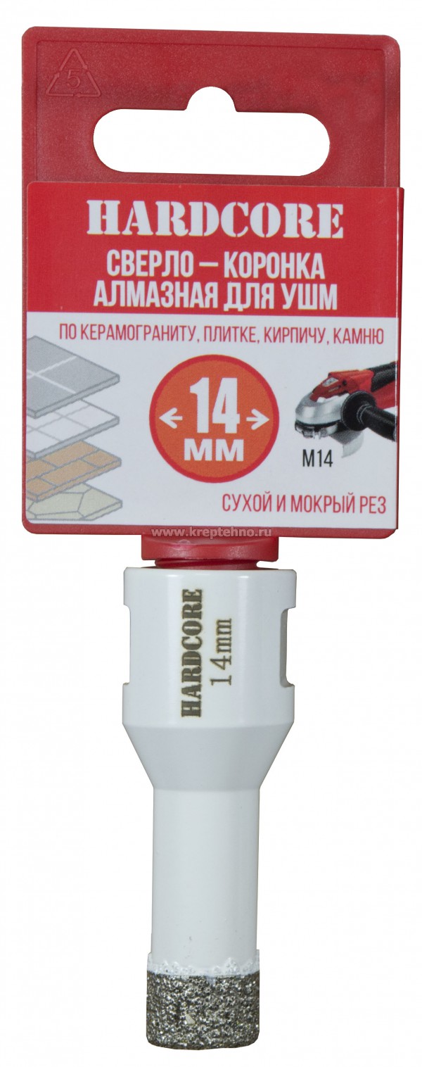 Коронка алмазная по керамике и керамограниту 14 мм/M14 для УШМ, Hardcore
