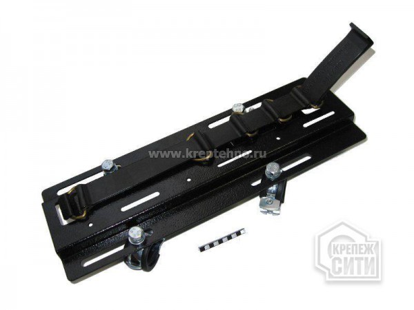 Крепится к трубам богажника снегохода специальными хомутами с резиновыми вставками. Расстояние между хомутами регулируется благодаря продольным отверстиям по бокам.