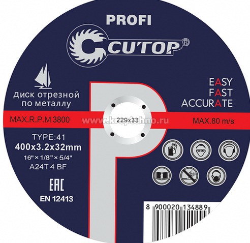 Диск отрезной 400 х4,0 х32мм по металлу Cutop Profi