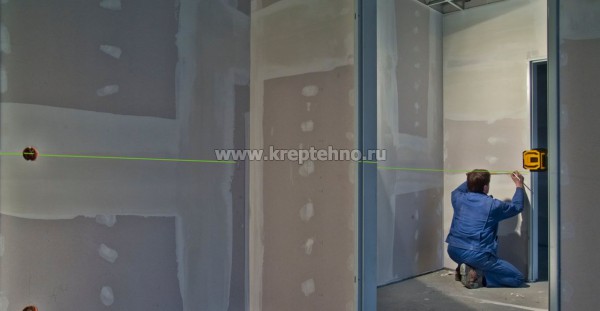 Отделочные работы: установка подвесных потолков, позиционирование перегородок, в том числе межкомнатных, монтаж U-образных металлических профилей для сухой штукатурки и перенос разметки с пола на потолок.
