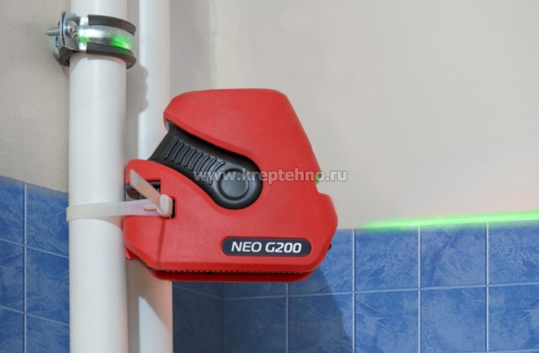 Широкий диапазон работы. С лазерным нивелиром NEO G200 заметно более комфортно работать на солнце, опорные оси, проецируемые этим построителем плоскостей, видны гораздо лучше при ярком свете. Угол развертки лазерных плоскостей достигает 140°. Высокая степень защиты. Внутренняя структура нивелира G200 имеет металлическую раму, которая гарантирует стабильную геометрию подвеса и защиту оптики. Корпус NEO G200 надежно защищен по всему периметру фирменным демпфером. В области захвата корпус имеет противоскользящую ребристую поверхность. Построение наклонных плоскостей. Лазерный уровень NEO G200 имеет функцию проекции наклонных плоскостей, достаточно активировать режим наклона и задать нужный угол. Многообразие вариантов крепления: