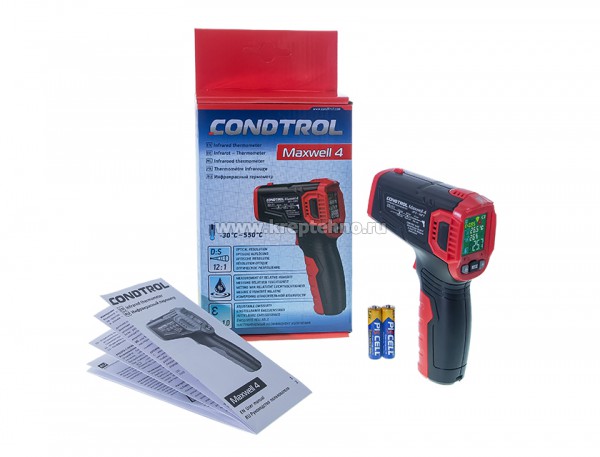 CONDTROL Maxwell 4 – портативный инфракрасный пирометр-гигрометр, позволяющий определить бесконтактным способом температуру поверхности объекта в диапазоне – 30 °С до 550°С. Отличительной особенностью является встроенный гигрометр, позволяющий измерять температуру среды. Пирометр CONDTROL Maxwell 4 сочетает в себе все функции, необходимые для контроля температуры в системах вентиляции, отопления, кондиционирования. Он способен определить перегрев различных механических и электрических устройств, диагностировать короткое замыкание. Точные измерения, интуитивный интерфейс и компактные размеры делают пирометр CONDTROL Maxwell 4 незаменимым помощником сотрудников жилищно-бытовой, строительной, ремонтной сфер деятельности.