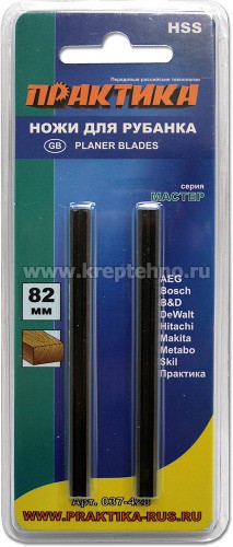 Нож для рубанка ПРАКТИКА 82мм х 5,5мм, быстрорежущая сталь (2шт)