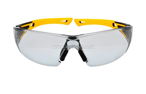 Защитные очки последнего поколения с двухцветными мягкими дужками, сделанными с применением инновационного материала ТЭП (термоэластопласт), с панорамными линзами, которые обеспечивают улучшенный обзор и защищают глаза от попадания летящих частиц.