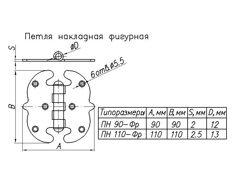 Петля накладная фигурная ПН 5-90-SL (черная матовая)