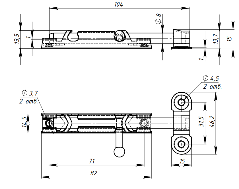 Шпингалет (задвижка накладная) ЗТ, цинк
