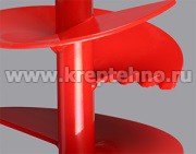 - Кромка каждого шнека армирована твердосплавной острозаточенной пластиной. Каждый шнек бура изготовлен коническим, что в значительной степени увеличивает его жёсткость и, соответственно, прочность. Такая конструкция также увеличивает объём разовой выемки грунта. Шнеки приварены таким образом, что второй шнек идёт по следу первого. При этом значительно уменьшается усилие вращения бура.