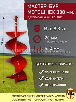 Шнек для мотобура 300 мм двухспиральный D20 мм