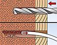 • Дюбель SXRL в полнотелых материалах работает за счет силы трения, а в пустотелых материалах - за счет внутреннего упора. Дюбель SXRL пригоден для установки в пенобетоне/пеноблоках