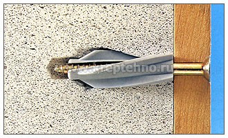 При распирании дюбеля шурупом обеспечивается его надёжное закрепление в пенобетоне.