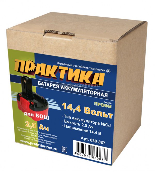 Купить Аккумулятор ПРАКТИКА 14,4B 2,0A NiCd для аккум.дрелей BOSCH в Екатеринбурге и Свердловской области можно в сети магазинов КРЕПЕЖ-СИТИ.