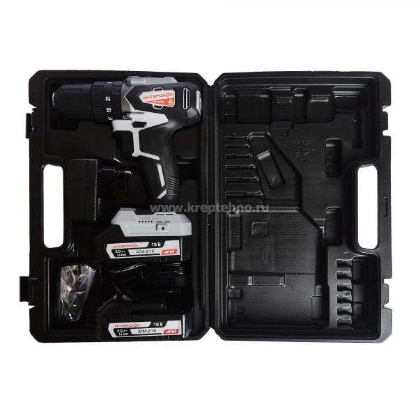 Дрель-шуруповерт оснащена Li-ion слайдерным аккумуляторным блоком платформы АПИ.