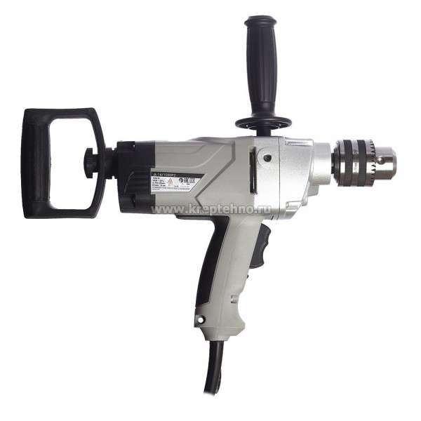 Мощная низкооборотная безударная дрель в комплектации миксер-дрели Д-16/1050Р2. Инструмент укомплектован составным шнеком и адаптером.