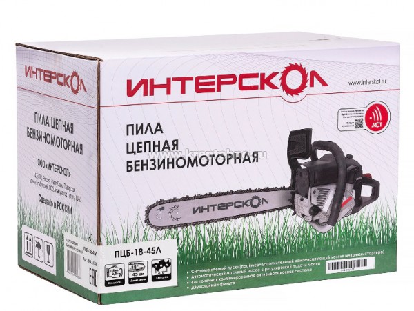 Бензопила ИНТЕРСКОЛ ПЦБ-18/45Л 1,8кВт, 45см (1,5мм, 0,325", цепь 72 звена)