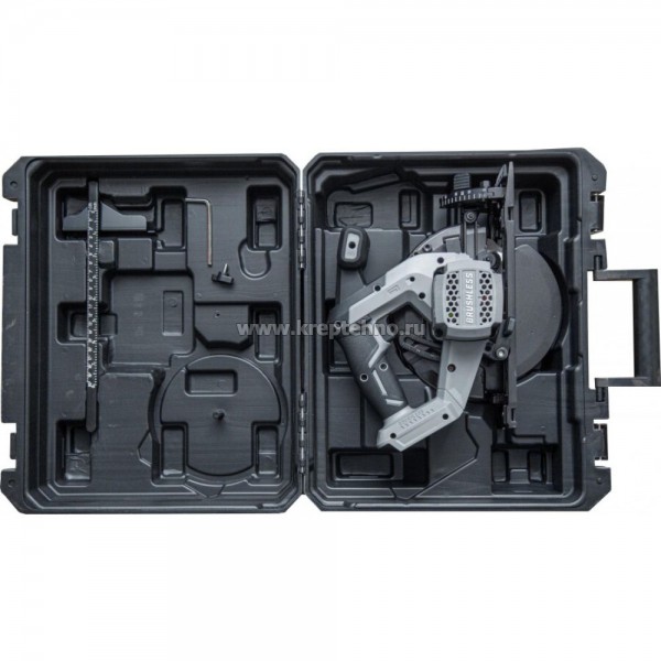 Профессиональная аккумуляторная дисковая пила для поперечного, продольного и комбинированного распиливания древесины, комбинированных материалов - фанера, ДСП, ОСП, и т.п. c вентильным бесщеточным приводом.
