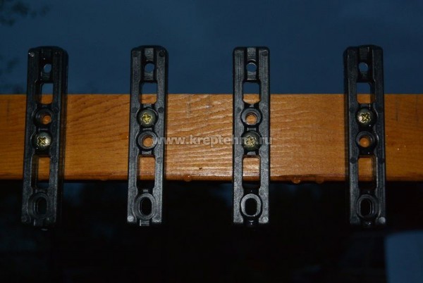 • Крепеж ДУЭТ90 позволяет осуществлять монтаж досок из древесины высокой плотности и толщиной более 35мм. Для этого используется дополнительный шуруп и дополнительное крепежное отверстие.