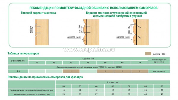 - Могут быть применены для крепления досок с низкой (сосна, кедр) и средней (лиственница) плотностью толщиной до 24мм.
